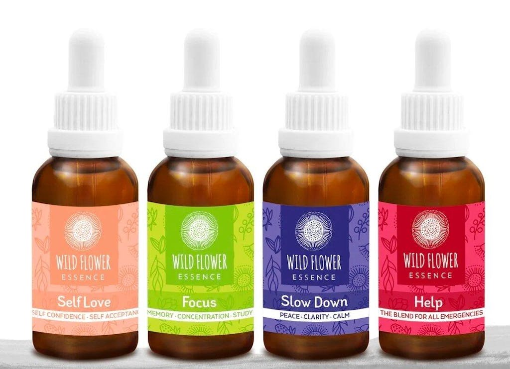 Vibrational infusion of water and flowers: Catspaw, Correa, Geraldton Wax, Golden Glory Grevillea, Mauve Melaleuca, Australian neutral cane ethanol (trace amount as preservative).
